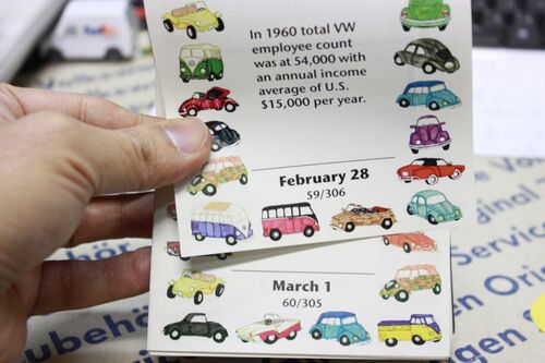 四年に一度の2月29日の VW 日めくり カレンダー は・・・・28 日の次が、3月1日でございました〜・・・・。 1960 年の 2月28日は、54,000 台の・・・・えーと、年間 15,000 ドルが・・・・、ちょっと難しいです。 僕の2月28…